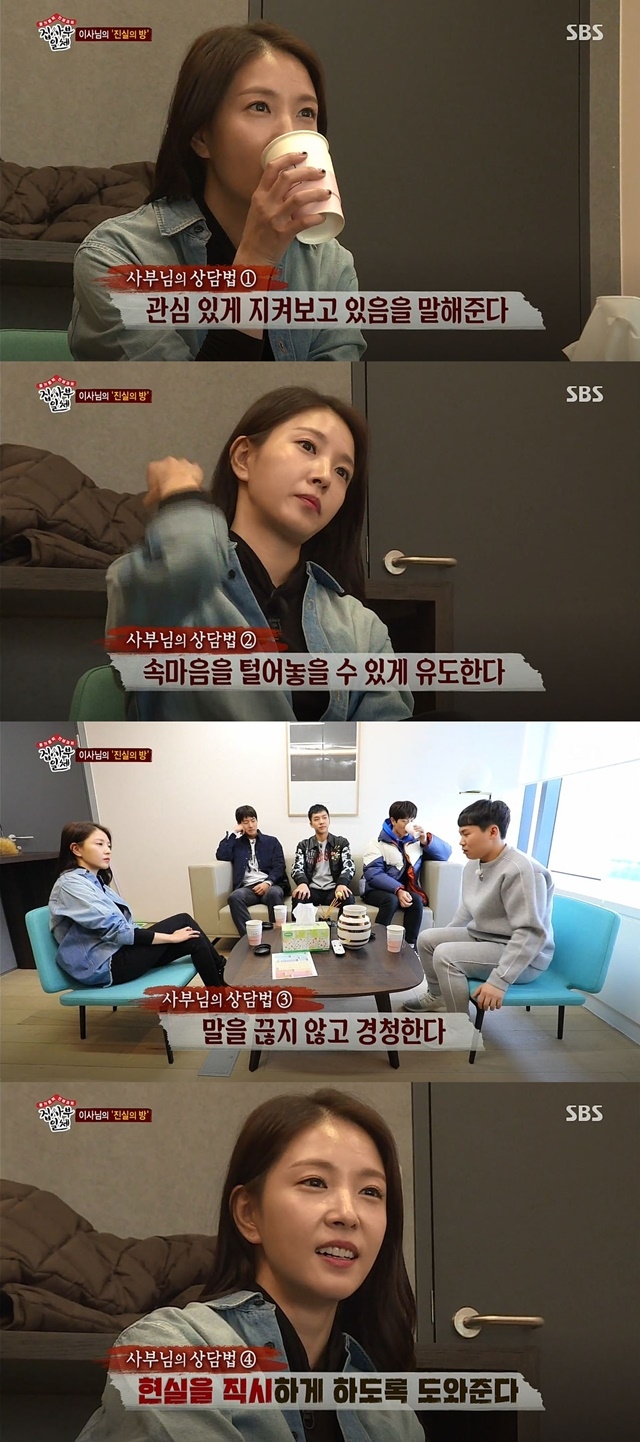 양세형이 “여기서 상담을 자주 하면, 상담 실력도 늘었을 것 같다”고 하자, 보아는 “최고의 상담은 들어주는 것”이라고 자신만의 상담 노하우를 설명했다.
