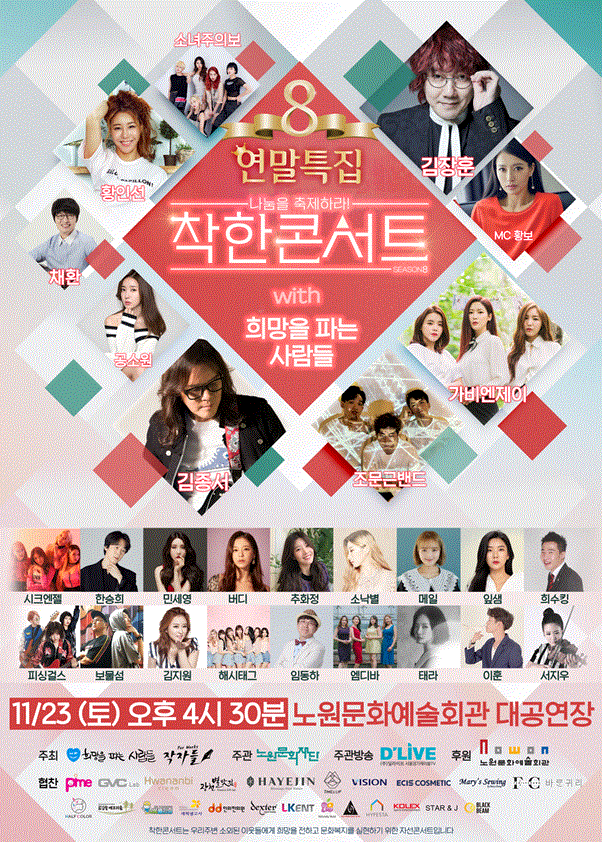 2019희망을파는 착한콘서트는 오는 23일 오후 4시30분 서울 노원구 노원문화예술회관 대공연장에서 개최된다. MC 황보를 비롯해 가수 김장훈, 김종서, 가비엔제이, 조문근밴드, 공소원 등 20여명의 뮤지션들이 재능기부로 참여한다.