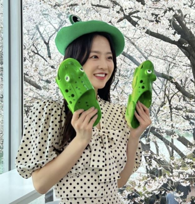 박보영은 27일 자신의 인스타그램 스토리에 “유퀴즈 온더 블럭 감사했어요”라는 메시지와 함께 사진 한 장을 올렸다. 사진 속 그는 개구리 왕눈이 모자와 초록색 슬리퍼를 들고서 해맑게 웃고 있다.