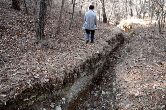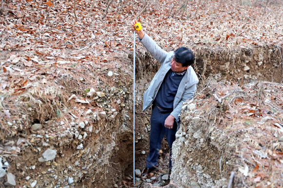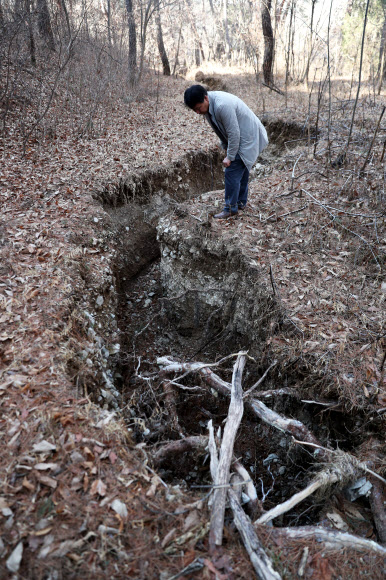 20일 경북 경주시 강동면 안계리 야산에서 만난 60대 주민 이모씨는 땅이 움푹 파인 곳을 가리키며 이같이 말했다.