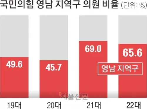 與의원 65%가 영남 텃밭… ‘친박’ 때와 다른 ‘친윤’의 건재함