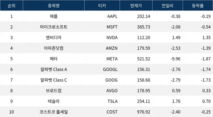 엔비디아는 1.35% 상승하며 112.20달러에 거래를 마쳤다. 테슬라는 0.70% 상승한 254.11달러를 기록했다. 브로드컴은 0.33% 오른 178.95달러에 거래를 마감했다.