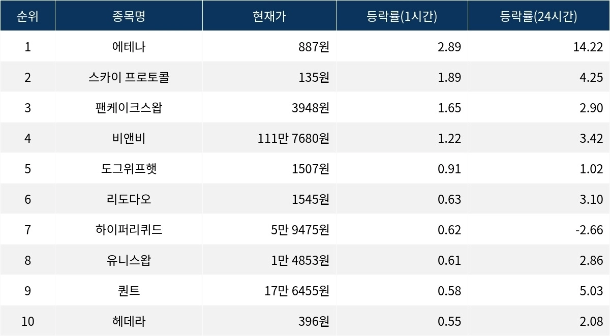 [서울데이터랩]에테나 스카이 프로토콜 팬케이크스왑 1시간 상승률 상위