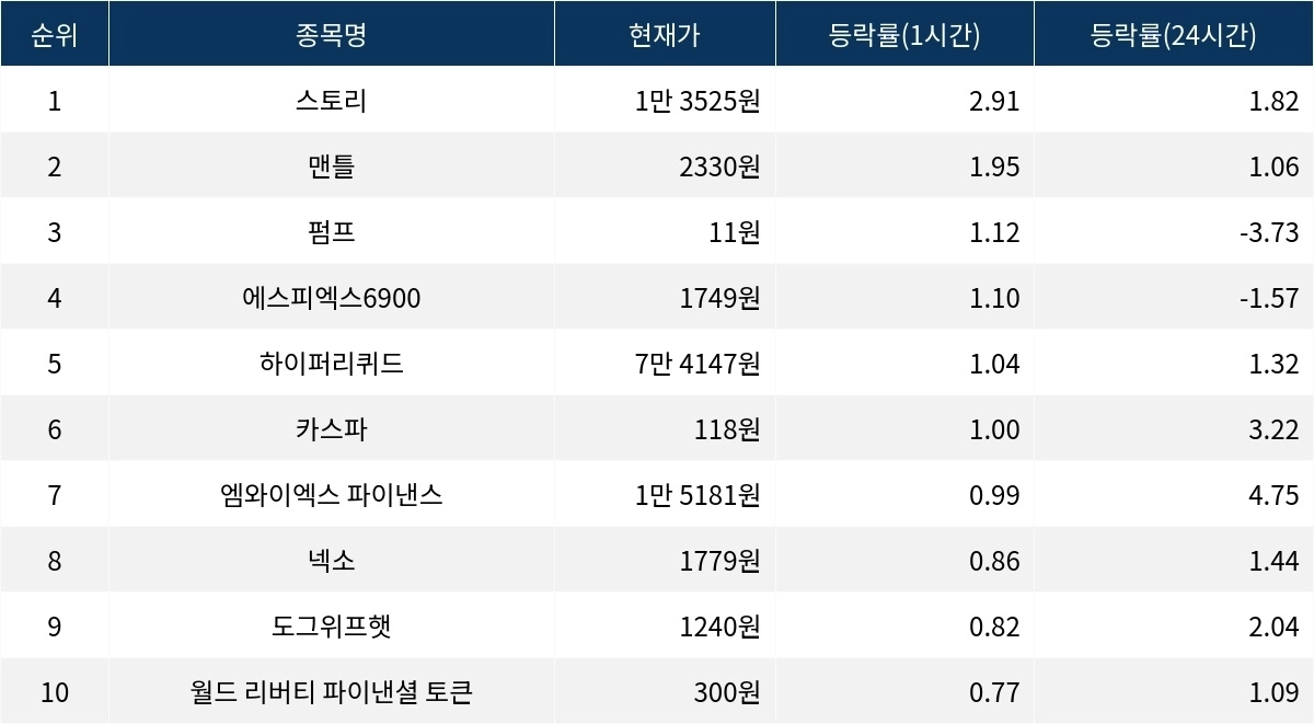 [서울데이터랩]스토리 맨틀 펌프 1시간 상승률 상위