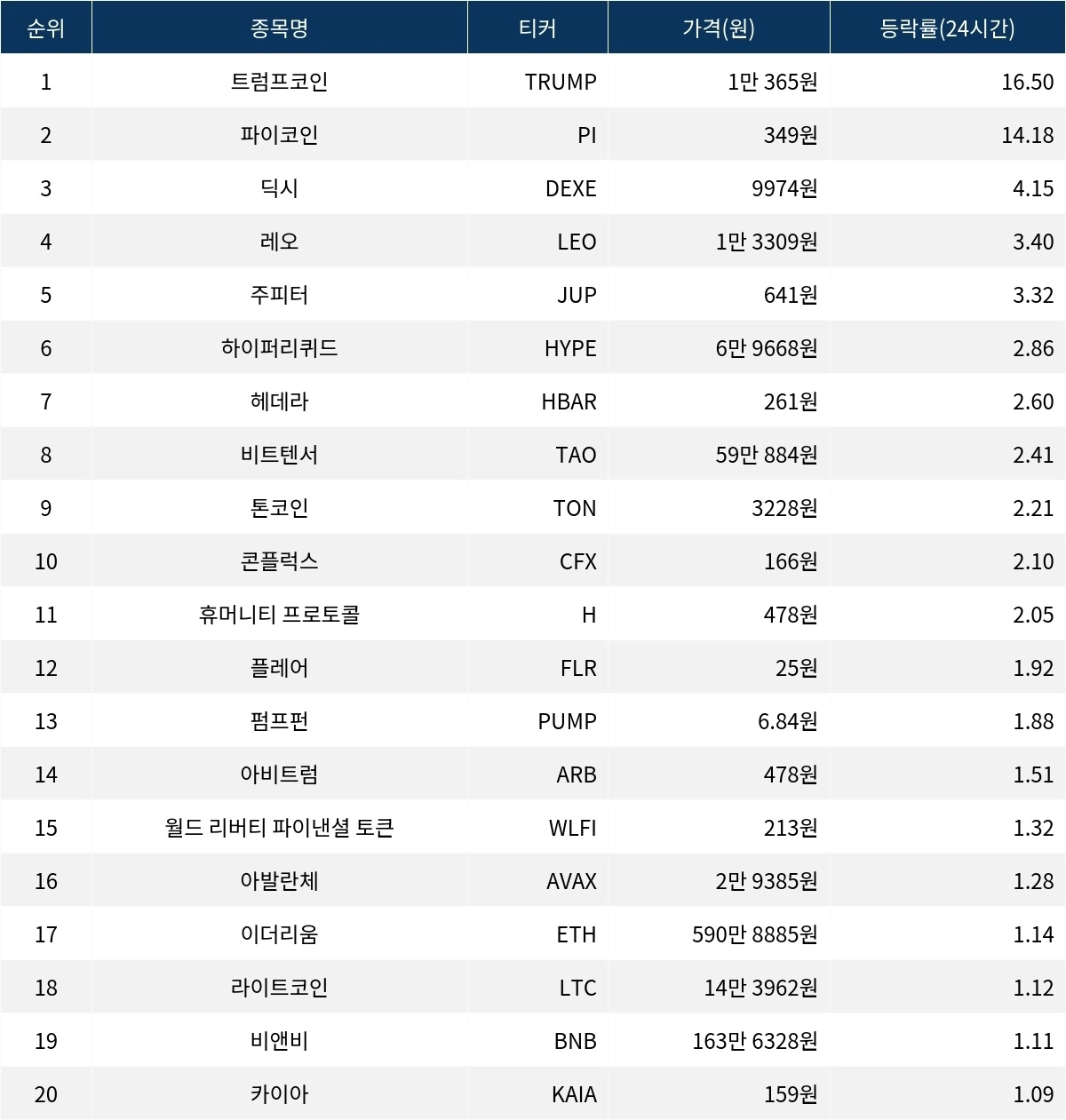 [서울데이터랩]트럼프코인·파이코인·딕시, 24시간 상승률 상위