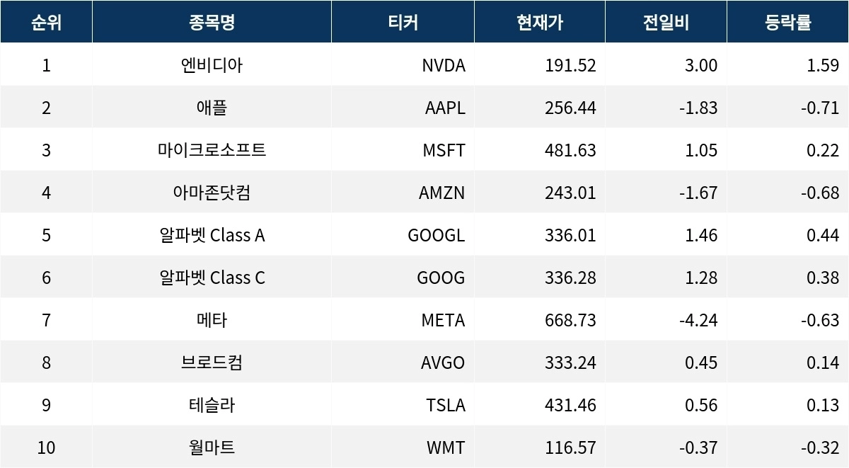 엔비디아(NVDA)는 1.59% 상승하며 191.52 달러로 마감했다. 마이크로소프트(MSFT)는 0.22% 상승해 481.63 달러로 거래를 마쳤다. 반면 애플(AAPL)은 0.71% 하락하여 256.44 달러에 거래를 마감했다.