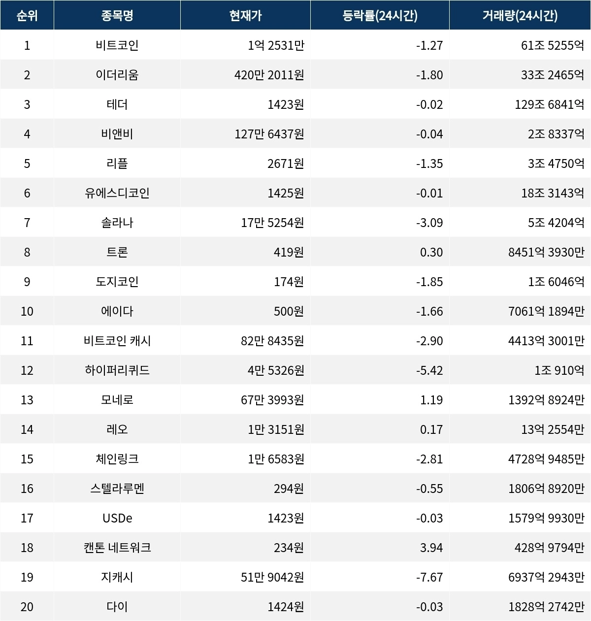 전반적으로 가상자산 시장은 하락세를 보이고 있으며, 일부 종목은 소폭 반등 가능성을 보인다. 투자자들은 변동성이 큰 시장 상황을 주의 깊게 관찰할 필요가 있다.