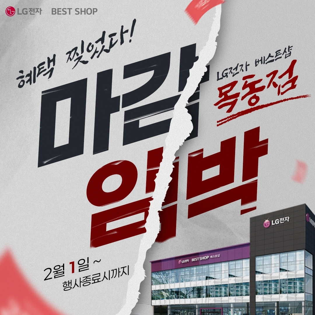 LG전자 베스트샵 목동점이 2월 1일부터 진행 중인 지역 세일 행사가 막바지에 접어들었다고 밝혔다. 이번 행사는 서울 서남권·경기·인천 지역 고객을 대상으로 생활가전·혼수가전·IT 기기까지 아우르는 대형 기획전으로, 웨딩·이사 고객을 위한 특별 혜택과 ‘그램 AI’ 신제품 할인 행사를 함께 선보이며 관심을 모았다.