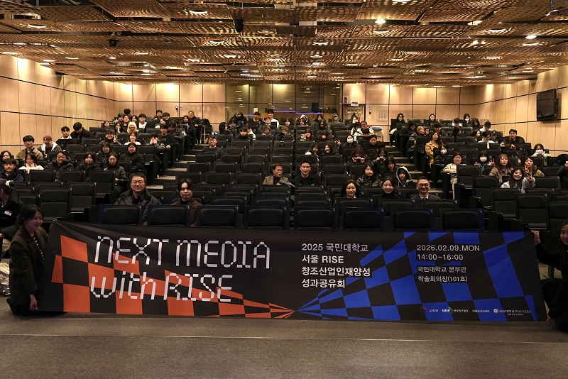 국민대학교(총장 정승렬) RISE 사업단은 지난 2월 9일(월) 교내 본부관 학술회의장에서 ‘국민대학교 서울 RISE 창조산업인재양성 성과공유회: NEXT MEDIA with RISE’를 성황리에 개최했다고 밝혔다.