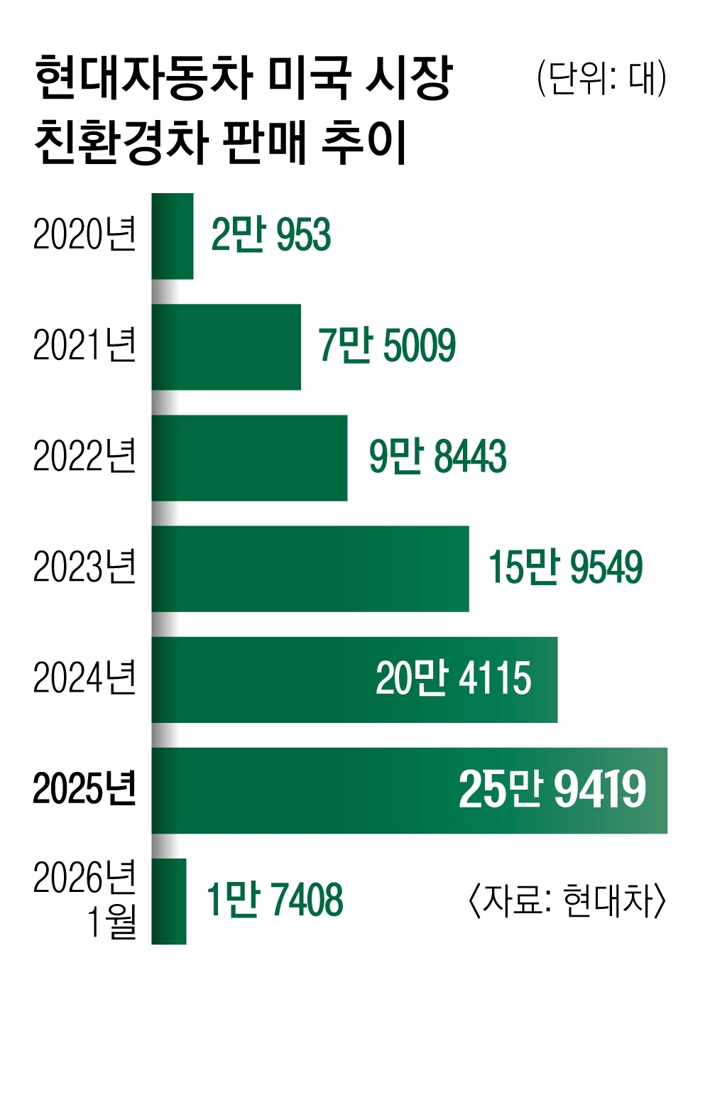 2011년 첫 판매…도요타와 치열 경쟁현대차는 2011년 미국 시장에서 쏘나타 하이브리드를 첫 판매한 뒤 지난달까지 친환경차를 총 101만 4943대 판매했다고 18일 밝혔다. 현대차는 미국 시장에서 2021년(7만 5009대)부터 2025년(25만 9419대)까지 5년 연속으로 연간 최다 친환경차 판매량을 경신했다. 지난달 친환경차 판매량도 1만 7408대로 지난해 동월 대비 30% 이상 늘었고, 1월 기준으로 역대 최다 판매량을 기록했다. 지난해 현대차의 전체 미국 판매량 중 친환경차 판매 비중은 26.4%다.
