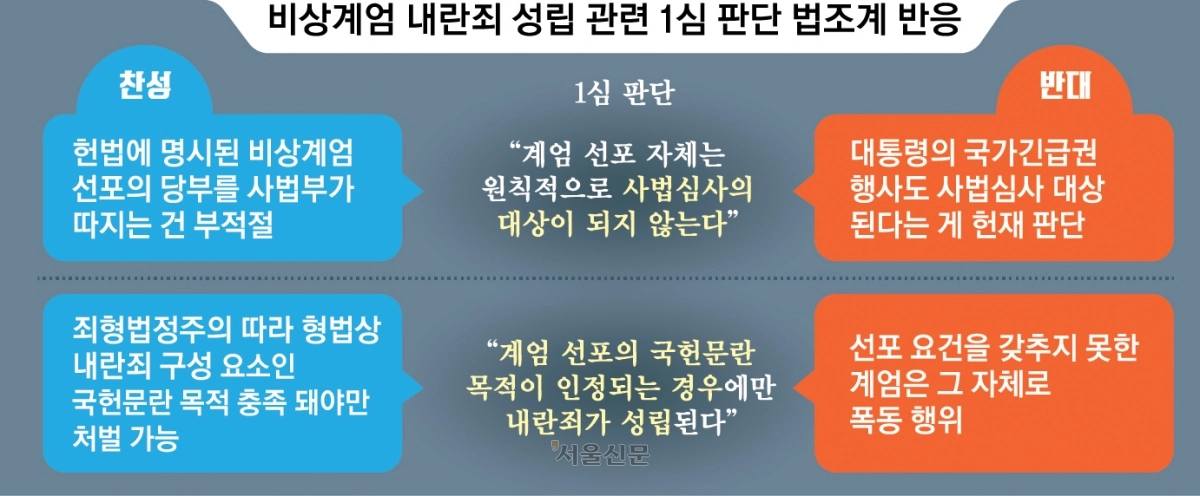 비상계엄이 사법심사의 대상에 해당하지 않는다는 재판부의 판단을 두고도 법조계 안팎에서 의견이 엇갈리고 있다.