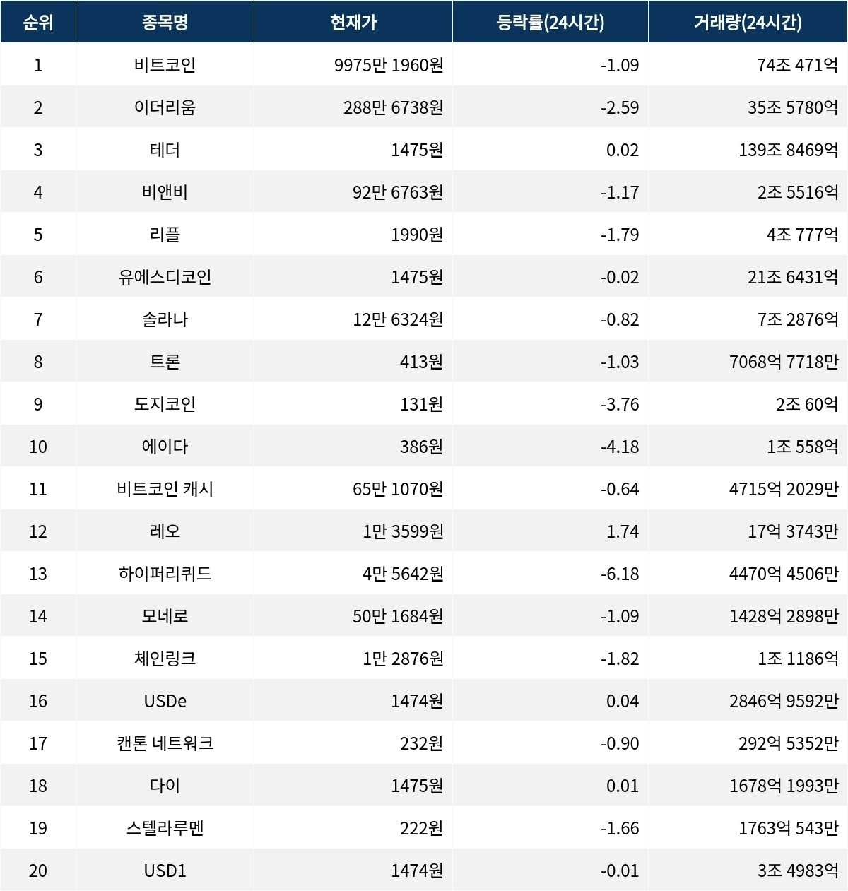 다이는 1475원으로 0.01% 상승했고, 시가총액은 7조 9169억원이다. 같은 시각 스텔라루멘은 222원으로 -1.66% 하락하며, 시가총액은 7조 3261억원이다.