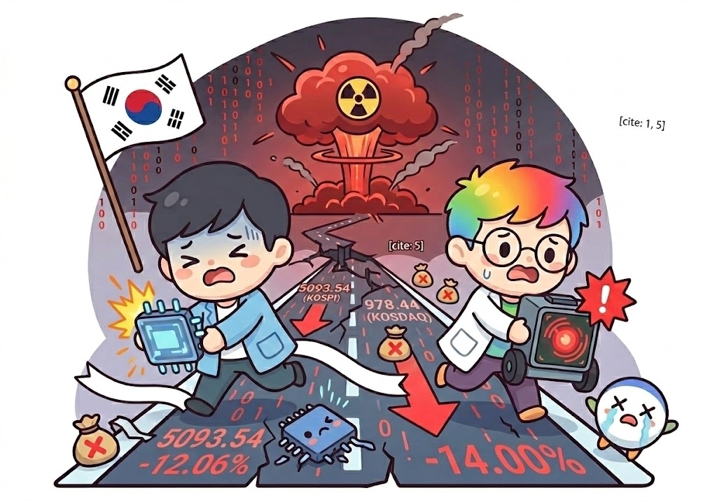 코스피 지수는 전날 7.24% 하락에 이어 이날 12.06% 추가 급락한 5093.54에 장을 마쳤습니다. 이는 2001년 9·11 테러 직후인 9월 12일 기록한 12.02%를 넘어선 역대 최대 낙폭입니다.