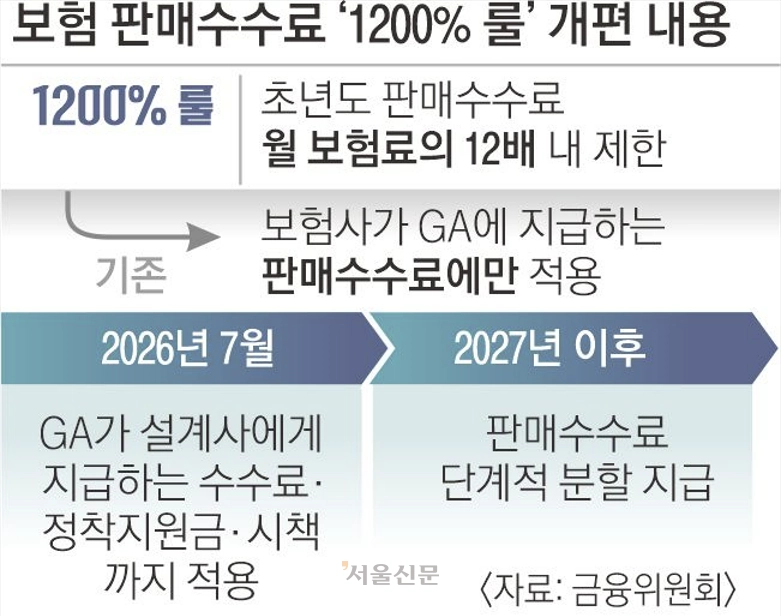 설계사 이동 증가… 승환 계약·보장 공백 우려이 같은 경쟁의 배경에는 오는 7월부터 GA에도 적용되는적용되는 판매수수료 규제, 이른바 ‘1200% 룰’이 있다. 보험 설계사에게 보험판매 첫 해 지급하는 판매수수료(모집, 유지·관리, 인센티브 등)를 월납 보험료의 12배 이내로 제한하는 정책이다. 이 제도가 적용되면 첫해 수수료 총액에 상한선이 생기면서 설계사 영입이 어려워질 수 있다. 이 때문에 GA들이 제도 시행 전 우수 설계사들을 미리 확보하려는 것이다.