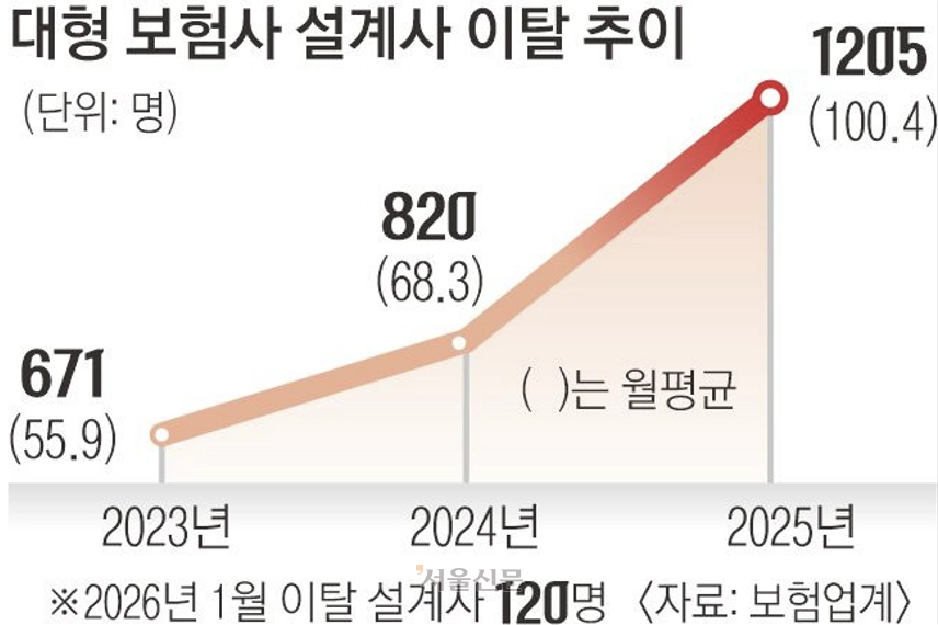 설계사의 GA 이동도 늘고 있다. 한 대형 보험사 내부 집계에 따르면 GA로 이직한 설계사는 2023년 671명에서 2024년 820명, 지난해에는 1205명으로 2년 새 2배 가까이 증가했다.
