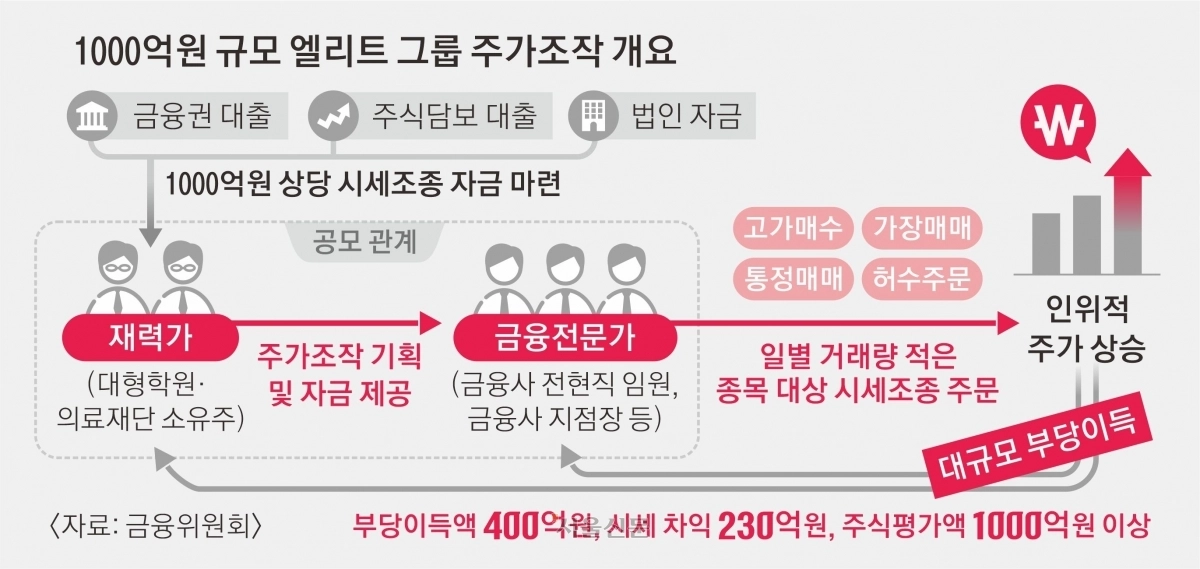 금융당국이 ‘주가조작 근절 합동대응단’의 1호 사건인 1000억원대 ‘슈퍼리치 주가조작’ 연루자들을 검찰 고발 조치했다. 시세조종 대상이 된 기업의 임원도 주가조작에 가담한 것으로 드러났다.