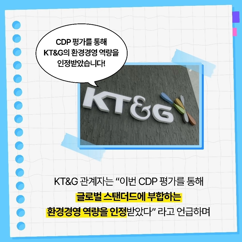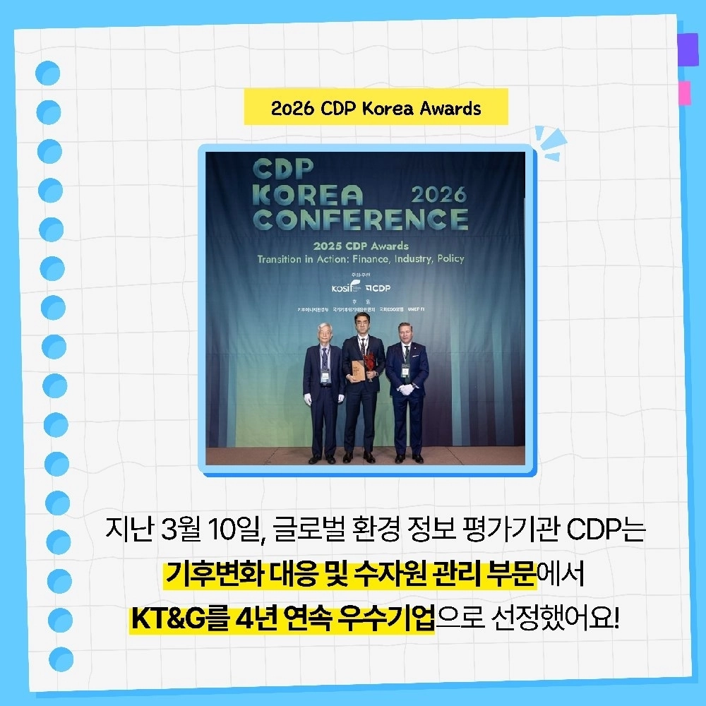 [카드뉴스] KT&G, ‘CDP’ 기후변화·수자원관리 부문 우수기업 선정