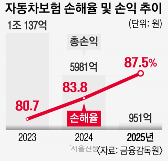 이처럼 늘어난 치료비가 보험 손익에도 영향을 미치고 있다. 금융감독원에 따르면 지난해 자동차보험 손해율은 87.5%로 전년(83.8%)보다 3.7%포인트 상승했고, 총손익은 5891억원에서 951억원으로 급감했다. 보험업계 관계자는 “8주룰은 과도한 장기 치료를 막기 위한 최소한의 통제 장치”라며 “시행이 지연될수록 보험금 누수가 이어지고 그 영향이 보험료 부담으로 이어질 수밖에 없다”고 말했다.