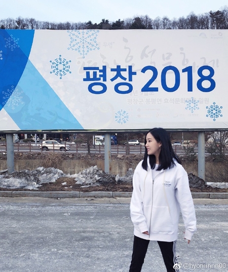 이날 효민은 자신의 웨이보에 “평창”이라는 짧은 문구와 함께 평창올림픽 경기장에서 찍은 사진을 공개했다.