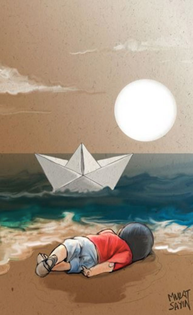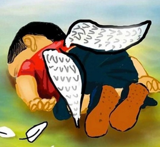 겨우 세 살배기 아이가 차디 찬 바다에 휩쓸려 모래에 얼굴을 박고 엎드려 있는 모습은 많은 사람들의 가슴을 울린 동시에 난민들의 비극적인 현실에 대한 공분을 불러일으키고 있다.