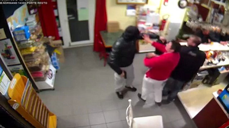 18일(현지시간) 영국 데일리메일은 지난 15일 프랑스 북서부 노르망디의 한 프렌치 레스토랑에서 무장강도를 제압해 내쫓는 여주인의 CCTV 영상을 기사와 함께 보도했다.