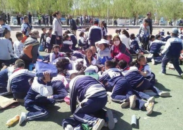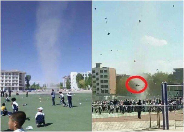 중국 CCTV의 21일 보도에 따르면, 간쑤성 과저우 현의 한 초등학교 운동장에서는 운동회가 진행되고 있었다. 이날 운동회에 참여 중이던 한 초등학교 3학년 학생은 갑자기 불어닥친 회오리바람에 휩싸여 공중으로 올라갔다가 합성수지가 깔린 운동장에 떨어졌다.