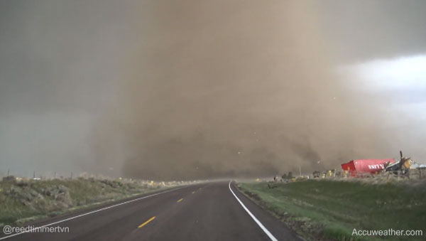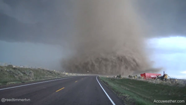 폭풍을 쫓아다니는 추적자인 스톰 체이서(Storm Chaser) ‘리드 티머’(Reed Timmer)에 의해 촬영된 영상에는 수 km에 달하는 회전 상승 기류인 메조 사이클론(Mesocyclones)의 중심부에 있는 거대한 토네이도의 모습이 보인다.