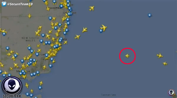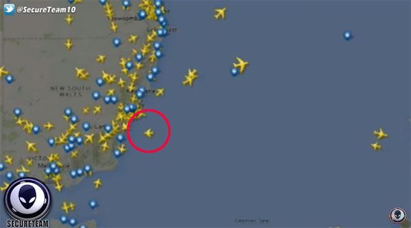 영국 내 UFO 관련 그룹 ‘시큐어팀 10’(SecureTeam 10)이 유튜브에 게재한 영상에는 비행기의 실시간 움직임을 볼 수 있는 플라이트 트랙커의 모습이 담겨 있다. 호주의 상공과 공해를 지나는 100여 대의 항공기들의 모습이 실시간으로 보인다. 곧이어 바다 쪽에서 일반 항공기 속도보다 50~100배 정도 빠른 미확인 비행기 한 대가 호주 뉴사우스웨일스 쪽으로 이동하는 모습이 포착돼 있다.