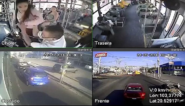 28일(현지시간) 영국 데일리메일은 지난 24일 멕시코 중서부 할리스코의 한 공공버스에서 한 젊은 여성이 비정류장인 곳에서 하차 요구를 거절한 버스기사를 폭행하는 사건이 발생했다고 보도했다.