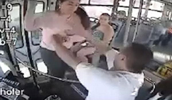 운행 중 하차 요구 거절한 버스기사 폭행하는 멕시코女
