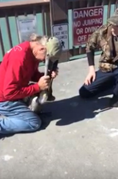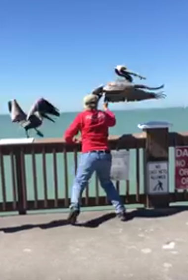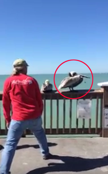 지난해 2월 유튜브에 게재된 영상에는 부둣가 난간 위에 앉아 있는 펠리컨을 바라보는 남성의 모습이 보입니다. 바로 펠리컨의 부리에는 낚싯줄이 묶여있기 때문입니다.