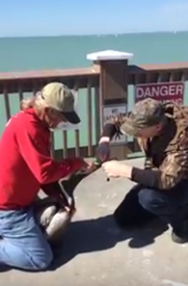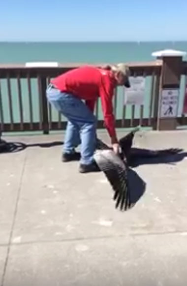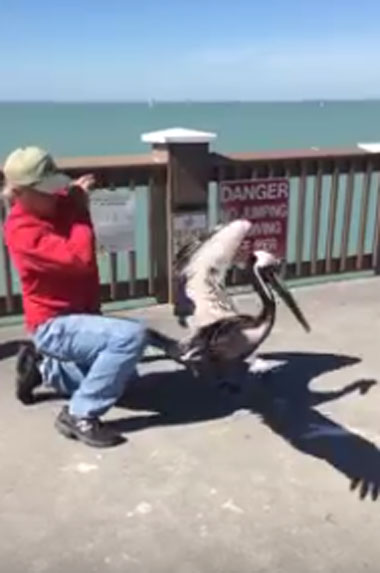 [생생영상] 펠리컨 입에 묶인 낚싯줄 풀어주는 남성