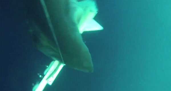 ‘어~ 먹이가 아니네!’ 수중 드론 공격하는 거대 백상아리