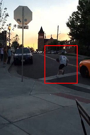 세로로 찍힌 카메라 영상 프레임 안에는 포착되지 않았지만 곧이어 커다란 충돌음과 함께 10대 소년이 스케이트보드를 들고 줄행랑친다. 맥라렌에 탑승했던 보조석의 남성이 차에서 내려 급히 소년을 뒤쫓는다. 이어 스마트폰 촬영자는 도로로 다가가 박살 난 맥라렌 앞유리를 보여준다. 맥라렌 운전자가 보조석 문을 닫은 후 쏜살같이 현장을 빠져나간다.