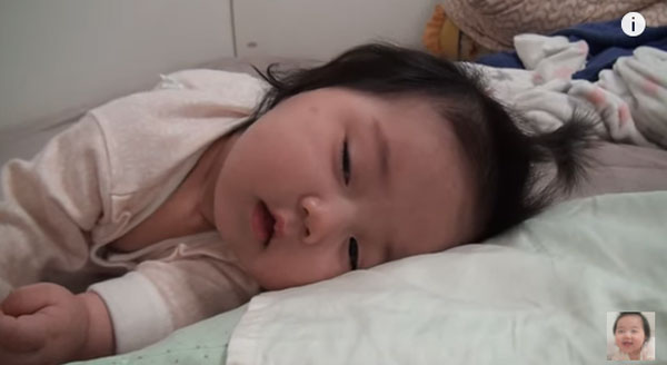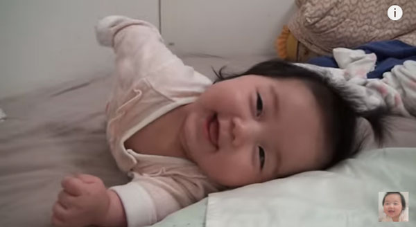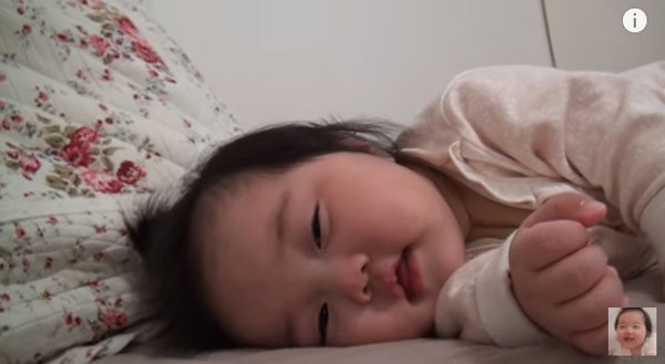 영상에는 당시 6개월 된 ‘예린’이란 이름의 아가 모습이 담겨 있습니다. 예린이는 자다 깨기를 반복하면서 미소 띤 얼굴로 엄마를 쳐다봅니다. 잠을 못 이겨 뒤척이며 깰 때마다 엄마를 보고 환하게 웃는 모습이 너무 귀엽습니다.