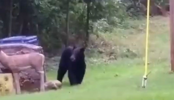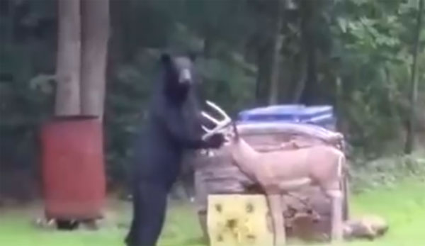 [별별동물] 뒤뜰 침입해 사슴 조각상 공격하는 야생곰