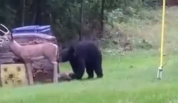 거듭된 공격에도 사슴이 꿈쩍도 하지 않고 서 있자 야생곰은 두 발로 일어나 앞발로 사슴을 공격해 쓰러트린다. 이어 인기척을 느낀 야생곰이 집 방향을 응시한 후, 숲으로 도망친다.