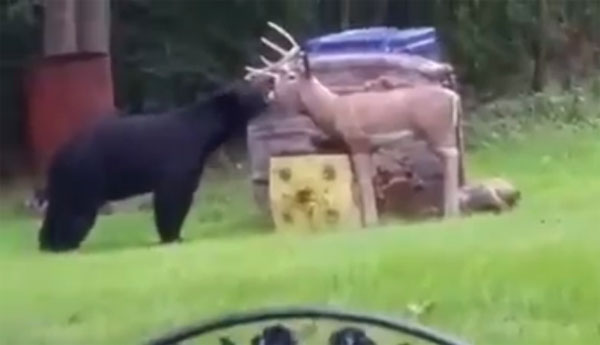 야생곰의 관심을 사로잡은 것은 다름 아닌 사슴 조각상. 야생곰은 뿔 달린 사슴이 신기한 듯 이리저리 살펴보다가 엉덩이 부위를 물기도 한다. 잠시 뒤, 사슴 앞으로 이동해 온 야생곰이 뿔을 물며 공격한다.