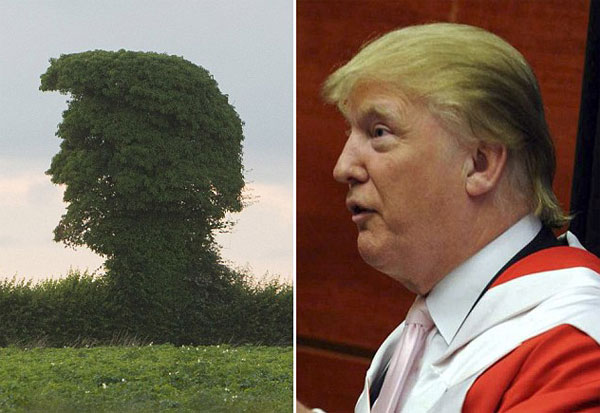 지난달 31일(현지시간) 영국 데일리메일은 최근 잉글랜드 헤리퍼드우스터 주 헤리퍼드 글루스톤에서 도널드 트럼프를 닮은 나무를 사진작가 존 로리(Jon Rowley·36)가 발견했다고 보도했다.
