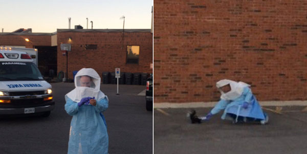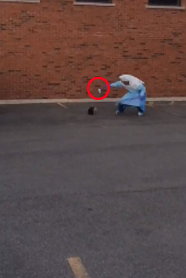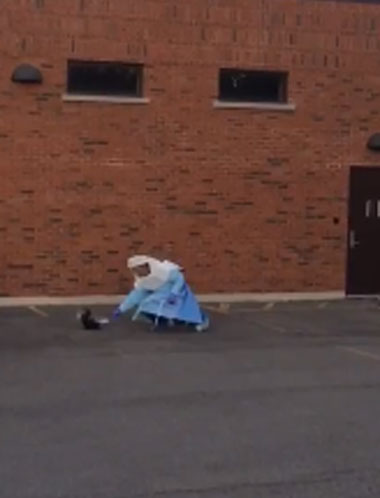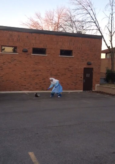 감염 보호장비를 착용한 채 스컹크를 구조하는 남성의 트위터 영상이 화제다.