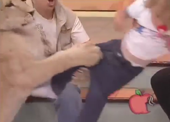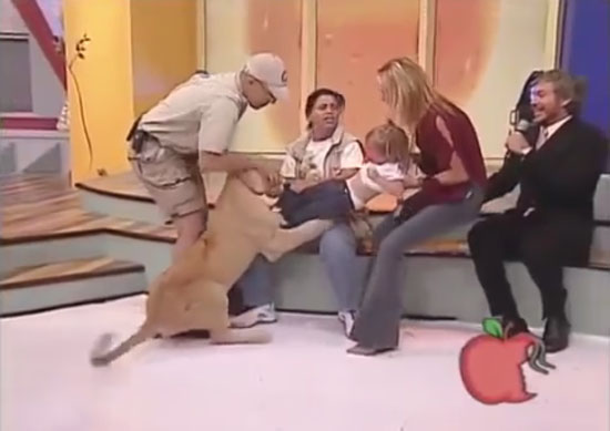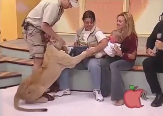 생방송 된 방송 화면에는 사자를 데리고 출연한 커플 사육사가 출연자들과 함께 스튜디오에 앉아 대화 중이다. 잠시 뒤, 여성 사육사 앞 가만히 앉아 있던 사자가 바로 옆 여성 출연자가 안고 있던 아기가 울음을 터트리자 앞발로 아기를 덮치며 공격한다.