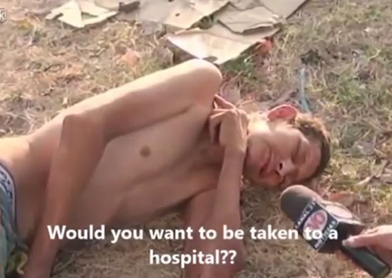 엘살바도르 TV방송사 TVO 노티시아(TVO Noticias)가 보도한 영상에는 트럭에 치여 고통스러워하는 남성의 모습이 보인다. 신음을 내며 고통스러운 표정을 짓고 있는 남성에게 기자가 다가와 “차량이 다가오는 것을 못 봤나요?”라 묻자 피해 남성이 “못봤다”라 답한다. 이어 기자가 “병원에 가고 싶나요?”, “어디로 가는 길이었나요?”라 묻자 남성은 대답을 잇질 못한다.