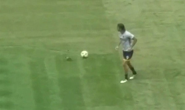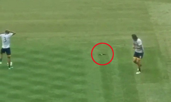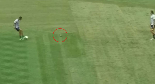 축구 선수들의 몸풀기 패스 공에 맞아 부상하는 비둘기의 모습이 포착됐다.