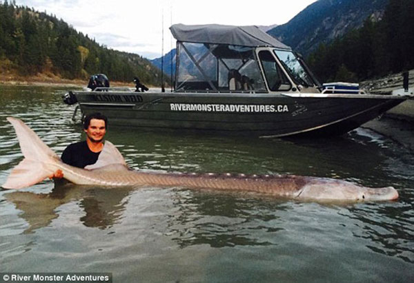 26일(현지시간) 영국 데일리메일은 캐나다 브리티시 컬럼비아주 프레이저 강 릴루엣(Lillooet)에서 19살 청년 ‘닉 맥케이브’(Nick McCabe)가 돼지 코 모양의 거대 흰철갑상어를 낚았다고 보도했다.