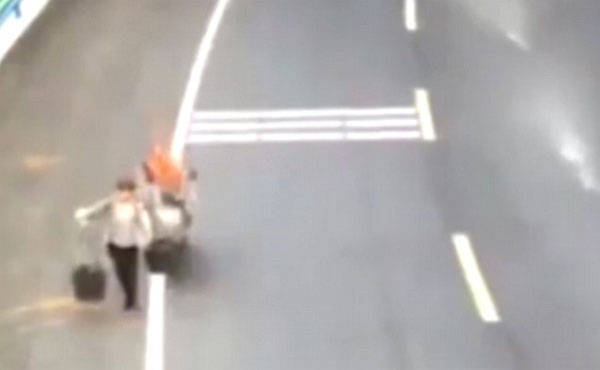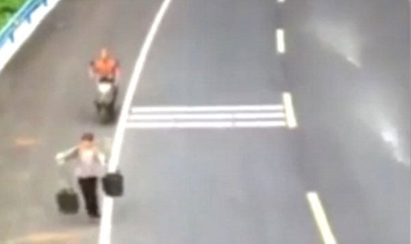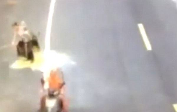 인분 짊어진 여성농부와 충돌하는 오토바이, 도대체 왜?