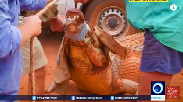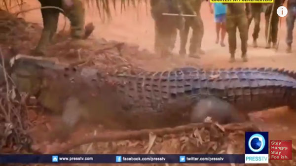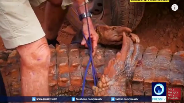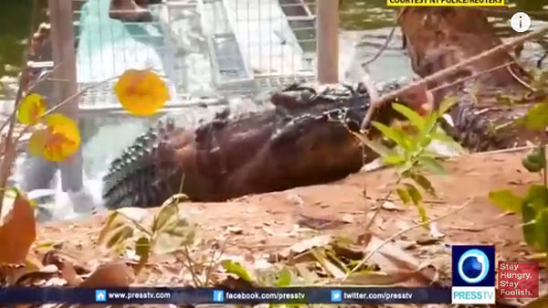 이날 포획된 악어는 4.3m에 달하는 ‘인도악어’로 소를 잡아먹었기 때문으로 알려졌다.
