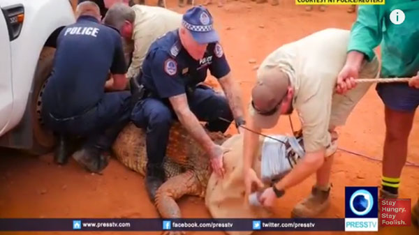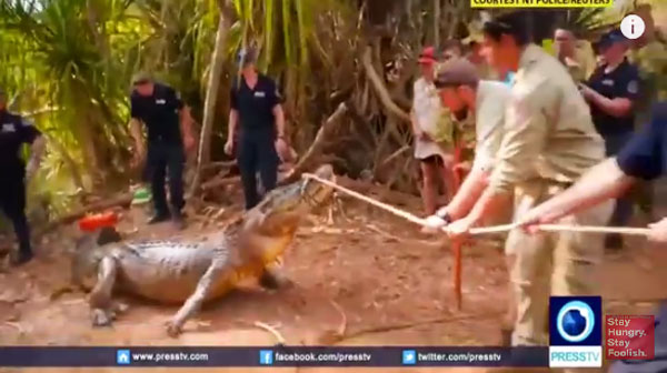 지난달 31일(현지시간) 영국 동영상 공유사이트 ‘라이브릭’(Liveleak.com)은 최근 호주 노던 준주에서 소를 잡아먹은 거대 악어가 체포되는 순간을 담은 영상을 소개했다.