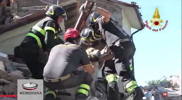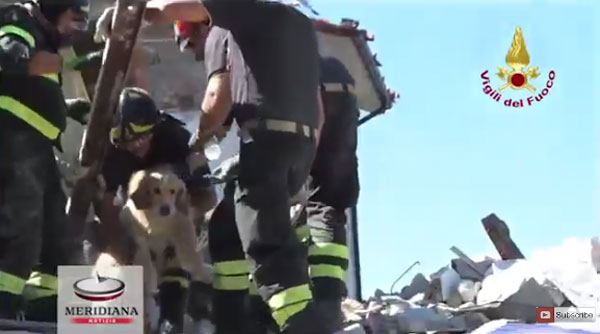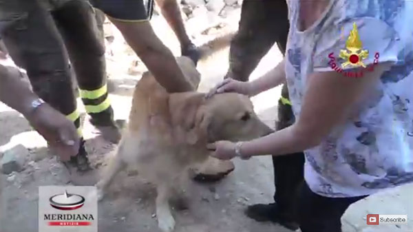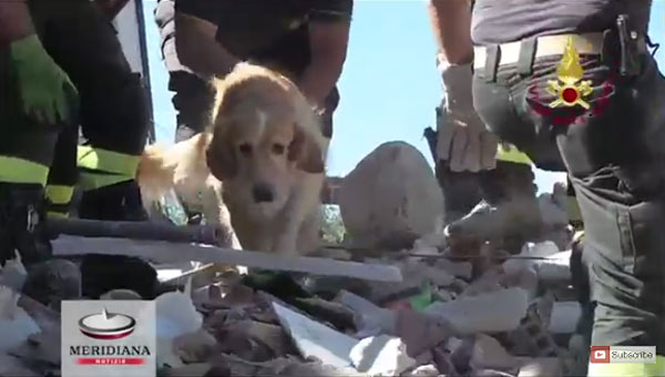 이탈리아 지진으로 무너진 폐허 속에서 반려견이 극적으로 구조됐다.