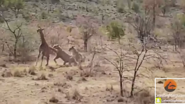 영상을 보면, 어미와 함께 있던 새끼 기린이 암컷 사자 2마리로부터 공격당하는 모습이 보인다. 사자가 새끼를 쓰러뜨리자 주변에 있던 어미 기린이 신속히 달려와 발차기로 사자들을 내쫓는다. 용감한 엄마로 인해 목숨을 건진 새끼, 하지만 다리가 부러진 새끼는 일어서지 못한다.