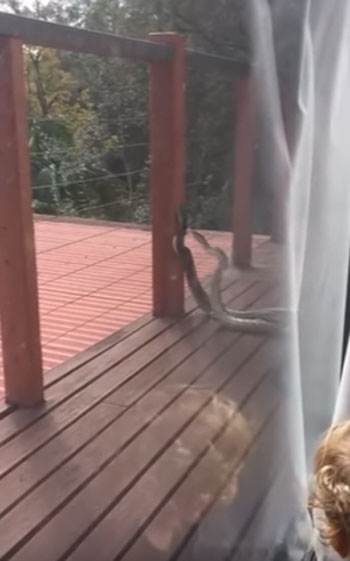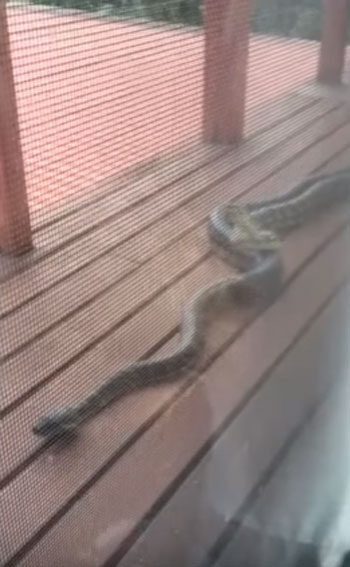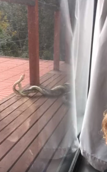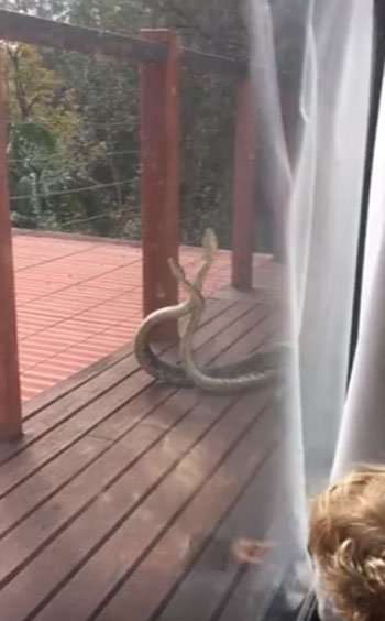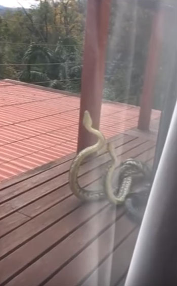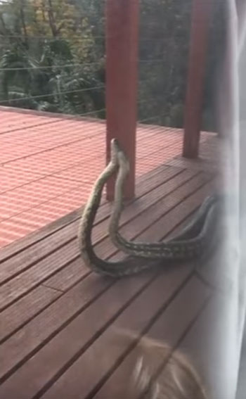 최근 영국 동영상 공유사이트 ‘라이브릭’(Liveleak.com)에는 호주 퀸즐랜드의 한 가정집 현관 앞에서 서로 싸우고 있는 커다란 수컷 비단뱀의 모습이 담겨 있다.